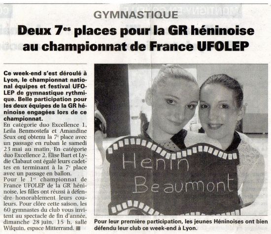 Championnat de France Equipes et Duos UFOLEP le samedi 23 mai 2009 à Lyon, article de La Voix Du Nord :