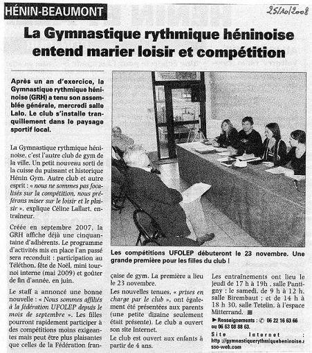 Assemblée générale du club le mercredi 22 octobre 2008 à la salle Lalo à 18h, article de La Voix Du Nord :