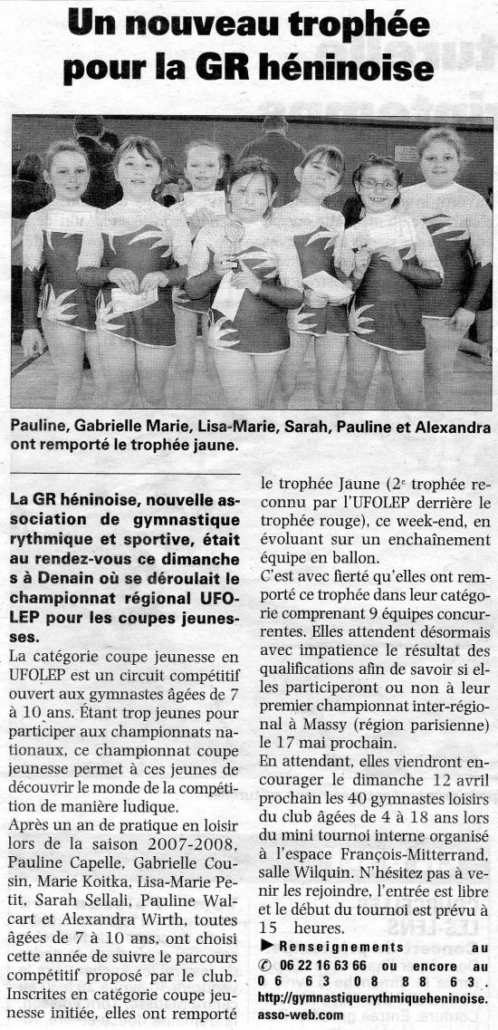 Championnat Régional Coupes Jeunesses UFOLEP le dimanche 22 mars 2009 à Denain, article de Nord Eclair :