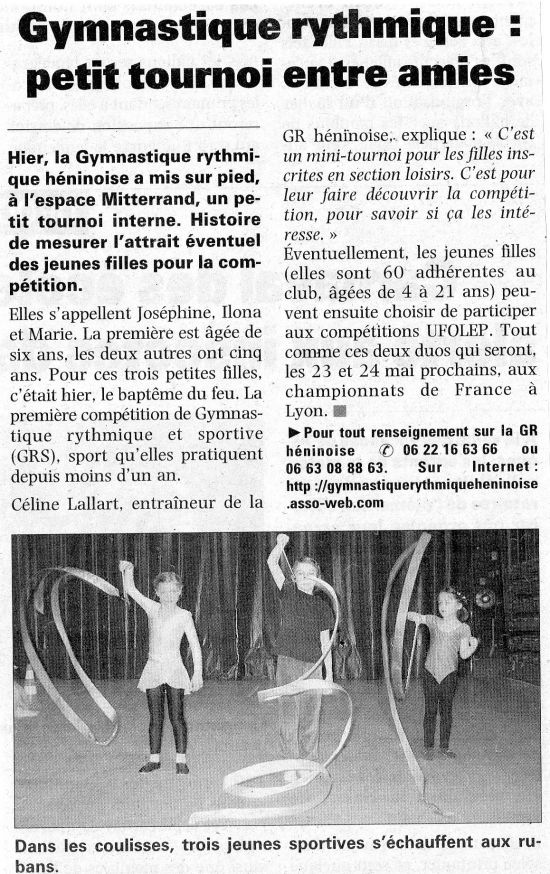 Tournoi interne au club pour les loisirs le dimanche 12 avril 2009 à l'Espace François Mitterrand à Hénin Beaumont, article de La Voix Du Nord :